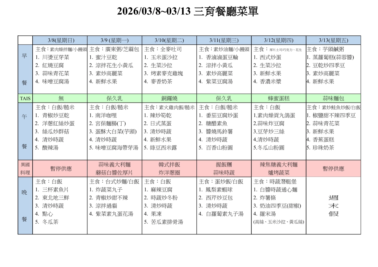 TAIS為奶蛋素的無肉校園(與三育基督學院共用校園與學生餐廳),蔬食飲食對青少年的好處請參考: 研究指出: